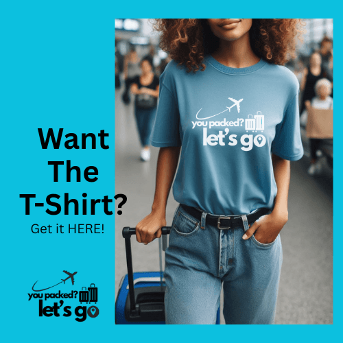 Get the "You Packed? Let's Go!" T-shirt to let everyone know that you STAY READY.... to travel.